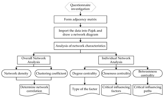 The influencing factors of residents’ GCB form an overall network. The influencing factors constitute the nodes in the network, and the interaction between nodes forms the paths in the network. These relationship pathways play a crucial role in studying the overall influencing factor network. Firstly, we used the Delphi method to modify and optimize the system of influencing factors of residents’ GCB, and determined the final research framework. Then, we conducted network feature analysis on the influencing factors network of residents’ green consumption based on SNA. The identification of the critical influencing factors of GCB was divided into overall network analysis and individual network analysis. Among them, the overall network analysis included the construction of the overall influence network and the calculation of the overall network density and clustering coefficient. Individual network analysis included degree centrality analysis, closeness centrality analysis, and the identification of critical influencing paths [