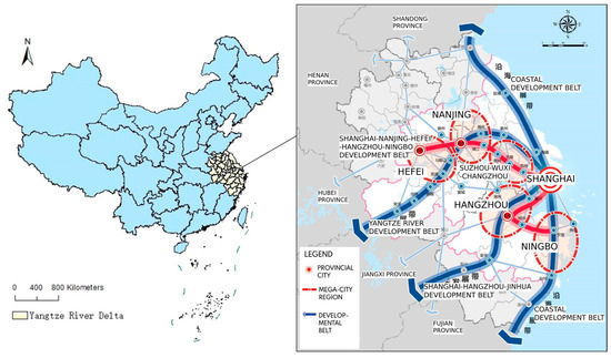 The Yangtze River Delta (YRD) in China was selected as the empirical case study for this research for the following reasons. The YRD not only has the largest and most-developed urban agglomeration in China, but also has become a focal point of China’s effort to promote regional integration, alongside two other major mega-city regions, the Pearl River Delta and the Beijing–Tianjin–Hebei region. The YRD has been designated by the central government as a pilot area for extensive investments in regional transportation infrastructure and also for testing comprehensive regional integration planning and policies. Hence, the YRD is one of the most-suitable cases in China for studying regional transportation integration and high-quality development.