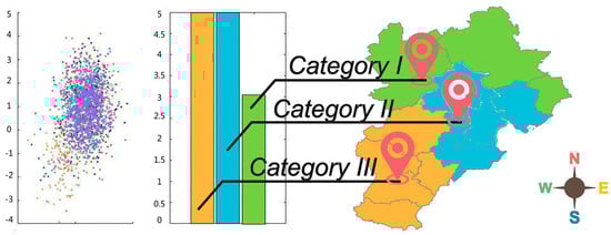 The data are grouped using LGC based on a spatial neighborhood matrix. LGC is a clustering algorithm based on local center metrics. It describes the connectivity of the adjacent regions of each sample point through local gravitational resultant force and centrality. By comparing clustering algorithms such as k-means clustering [33] and fuzzy c-means clustering [34], LGC has the advantage of being able to train singular values to obtain possible impact information [35].