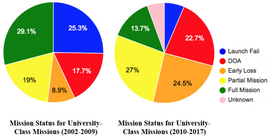 Mission status of CubeSat university–class missions provided by Swartwout [10].
