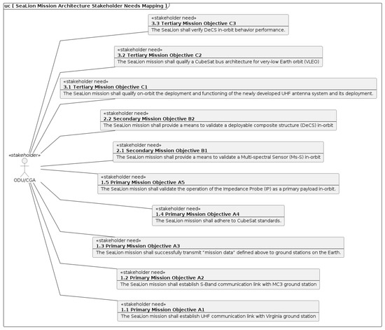 To showcase the benefits, an architecture process of 4858 information element transfers was performed. It noted that all of these transfers were performed manually with non-MBSE approaches; however, 13% of these transfers were automated with MBSE with the potential of up to 81% should it be used for trade study and peer review tasks [17]. The SeaLion mission architecture team seeks to take advantage of these efficiency gains that MBSE can achieve. Space projects have been taking advantage of MBSE such as the ExoMars mission, Euclid, Galileo, and nanosatellite programs [18,19,20]. CubeSat projects have also been using MBSE and have shown to “hold promise of reducing the burden of system engineering tasks” [21] and can “promote uniformity and consistency across future CubeSat models” [21]. These attributes are important to reduce workload among team members and to facilitate new team members as they join future projects. Facilitation of new members is especially useful for universities since students are not available long term due to events such as graduation.