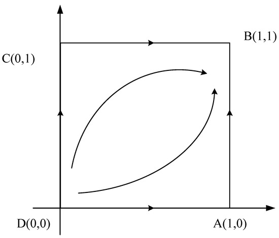 Conclusion 4: At this time, is the only ESS in the system evolution, and the evolutionary phase diagram is shown in Figure 5.