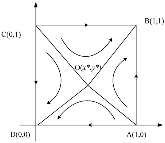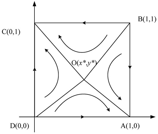 At this time, is the only ESS point of the system evolution and the evolutionary phase diagram is shown in Figure 2.