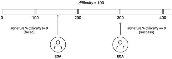 The signature requirement ensures data feeders pay to generate a random number, i.e., computation cost. Specifically, they need to attempt to put into the message signing process to find a valid signature. The difficulty in generating a valid signature is relative to the value of . The smart contract adjusts the to allow legitimate data feeders to publish authentic signatures. Conversely, fraudulent data feeders must pay a high price to manipulate the random number generation. In the following section, we delve into the appropriate adjustment of the value.