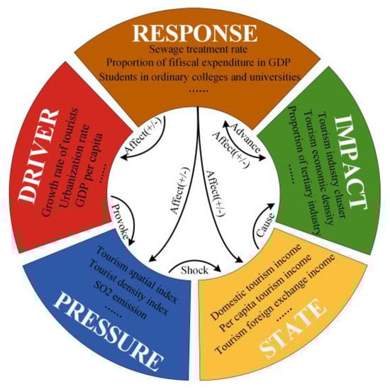 First, in terms of the TES evaluation models, most previous scholars directly applied existing models, excluding detailed explanations of their theoretical basis. Specifically, the DPSIR model, the most widely used in TES evaluation, is supported by open systems theory and has a complex operational logic [27]. However, the previous studies selected evaluation indicators based on five dimensions (D-P-S-I-R), without an in-depth analysis of the interaction among the subsystems. Therefore, in this study, based on the interpretation of the theoretical sources of the DPSIR model, the operation mode among the subsystems was explained, the basis for selecting each indicator was clarified, and the procedure of using the DPSIR model in TES research was standardized.