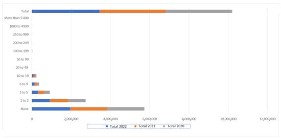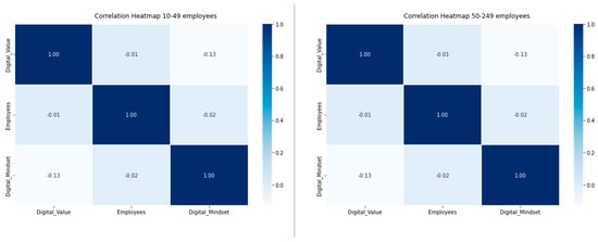 Based on these data, it seems logical to venture that different strategies should be followed depending on the size of the companies; however, after a deep review of the literature, it is observed that in addition to the fact that there are few models helping companies in decision making for digital transformation, practically none of them differentiate according to the number of employees or are focused on SMEs []. This point will be considered in our model, and as will be seen in the following section, we will perform a clustering of companies according to size, and we will suggest a report of specific recommendations for each of these clusters.