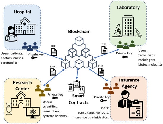 - Diaz, A.; Kaschel, H. Scalable Management Architecture for Electronic Health Records Based on Blockchain. In Proceedings of the 2022 IEEE International Conference on Automation/XXV Congress of the Chilean Association of Automatic Control (ICA-ACCA), Curicó, Chile, 24–28 October 2022; IEEE: New York, NY, USA, 2022; pp. 1–7. [Google Scholar] [CrossRef]
