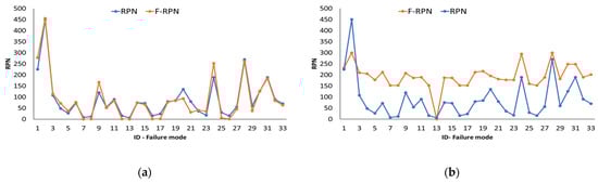 Figure 10 compares the RPN and the approach proposed in this research (F-RPN). As can be seen, by prioritizing the failure modes, the result of the evaluation with the fuzzy system presents a behavior like that of the conventional technique.
