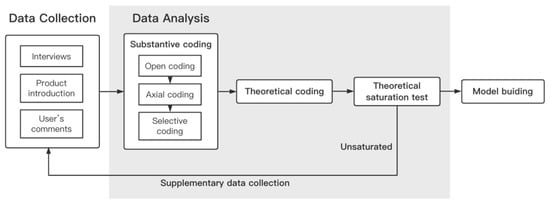 To build an emotional design model for smart products, grounded theory [59] was chosen. Grounded theory helped us build the model without prior knowledge of existing theories [61]. We used the standardized grounded theory coding steps [62] including a series of processes such as data collection, data analysis, theory coding, and theory saturation testing, as shown in Figure 1.