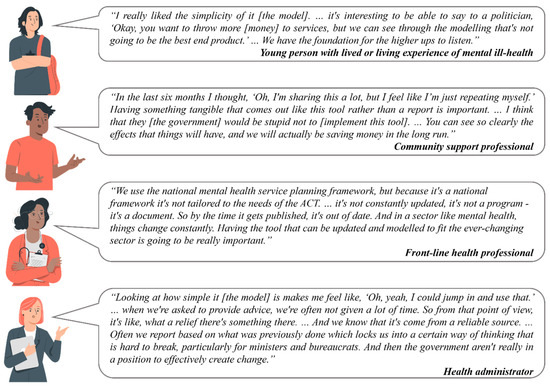 Interview quotes across stakeholder groups expressing the need for the model to be recognized as a legitimate tool to support decision-making for youth mental health policy and planning in the ACT.