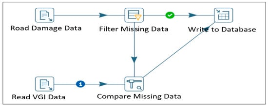 After being assessed, high quality VGI data are manually extracted and stored in shape files and csv files. Then, these VGI data files are integrated into the road maintenance datacube using the Pentaho data integration (PDI) tool. Figure 7 shows the ETL process to integrate VGI data into the datacube. In this process, selected high quality VGI data are read and compared to data from other sources, before being loaded into the datacube.