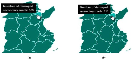 (a,b). The number o secondary damaged roads in the governorate of Ben Arous.