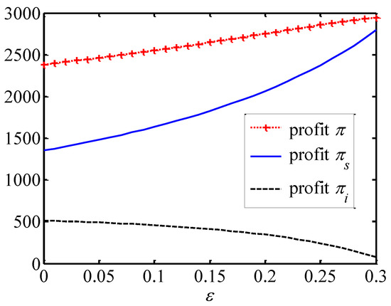 From Formula (35), we first find that each freight forwarder in the SCSCS earns equal profit, and this might be due to the fact that all freight forwarders are equally important to the supply chain, even though there is competition between the freight forwarders. Second, the freight forwarders’ profits have a positive association with the brand preference of shippers. That is, the brand preference of shippers also benefits the freight forwarders. This inspires freight forwarders to improve the effort levels extending brand value.