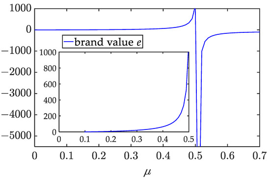 Observed from Formula (30), the equilibrium solution of the shipping company’ brand value has a positive association with the shippers’ brand preference according to . This observation implies that enhancing the brand awareness of the shippers helps to increase the brand value of the shipping company.
