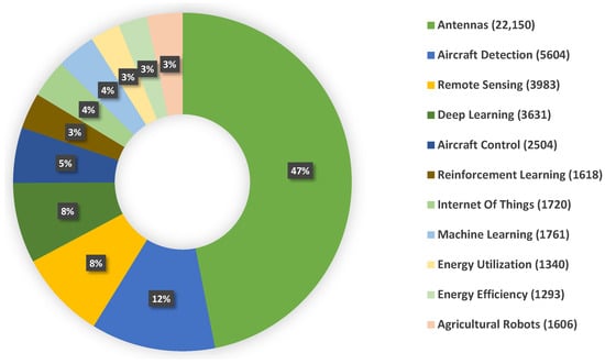 - A rigorous extraction of the most prominent research directions in the UAV domain over the past three years, employing a scientifically sound methodology for a comprehensive understanding of the current state-of-the-art in UAV research.