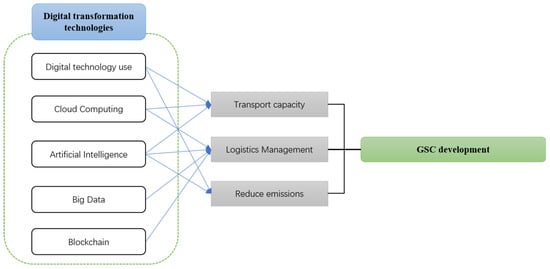 The impact of digital technologies on industrial sustainability is an emerging topic of discussion [1,2]. Digital transformation and sustainability are both at the forefront of current supply chain developments. However, how digital technologies contribute to sustainability of supply chains in specific industries needs to be explored more. Transportation is one of the world’s most carbon-emitting industrial sectors. According to the IEA, approximately 24% of the world’s carbon emissions came from the transportation sector in 2021. Achieving sustainable development has become an important direction for the current development of the transportation industry worldwide. In this context, the concept of a green supply chain was proposed, which refers to the reduction of carbon emissions in the transportation chain through advanced technology and effective management. Recently, studies have focused on the application of digital technologies in green supply chains [3,4,5]. However, related studies are mainly qualitative or case studies, and there is a relative lack of quantitative studies.