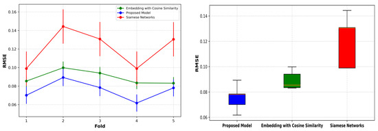 The comparison between fine-tuned state-of-the-art methods and the proposed model, using best-selected hyperparameters, is shown in Table 7 and Figure 8. State-of-the-art methods consistently improved predictive performance. Particularly, the Embedding with Cosine Similarity model outperformed the proposed methodology, with enhanced predictive ability and reduced deviation. Despite advancements, the performance gap between the proposed methodology and the latest approaches remains relatively small, as depicted in Figure 8’s boxplot. Thus, there is limited incentive to exclusively favor the latest techniques for acquiring a similar mixed-type dataset.