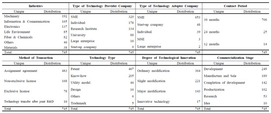 Distribution of technology transaction cases by influential factors.