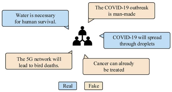 With the rapid development of big data and information dissemination technology, fake news spreads through social media, posing a destructive threat to the sustainable development of society. False information not only undermines public trust and disrupts social order but also leads to misleading decisions, social division and opposition, which hinder the normal operation and progress of society. Fake news specifically refers to news reports that are untrue or exaggerated, such as Figure 1. These reports may be deliberately created to mislead the public or promote a specific agenda. The influence of fake political news on the Internet is more obvious than that of fake news about terrorism, natural disasters, science, urban legends or financial information [1]. Compared with the truth, rumors tend to spread farther, faster and wider, which indicates fake news is more novel than real news. However, fake news often brings anxiety to people, affects the normal operation of society and threatens the sustainable development of society.