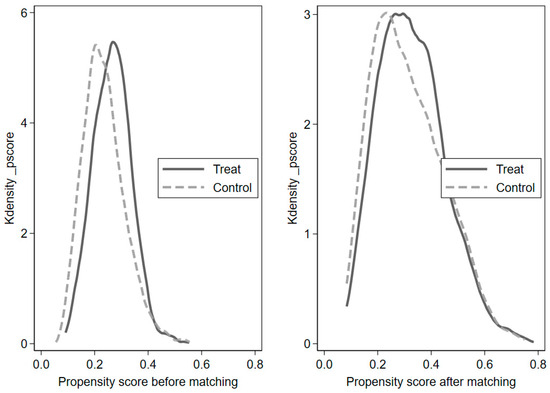 4.2.4. Propensity Score-Matching–Double-Difference Method (PSM-DID)
