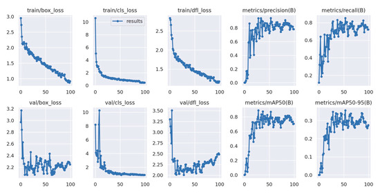 As we can see in Figure 7 and Figure 8, using method 2 provided better results with YOLOv8n. In method 2, the mAP50-95 obtained a value of 0.84, while using method 1 only obtained a value of 0.29. Similarly, the precision and recall values in method 2 were above 90% and better than those of method 1, which were only approximately 78%. Regarding using the EfficientDet model, the AP and AR values (Table 3) of the model using method 2 were also higher than those of method 1, and the highest values were AP (0.845) and AR (0.808). Assessing the trained models on the test set using method 2 with YOLO and EfficientDet, we achieved accuracies of 0.91 and 0.73, respectively.