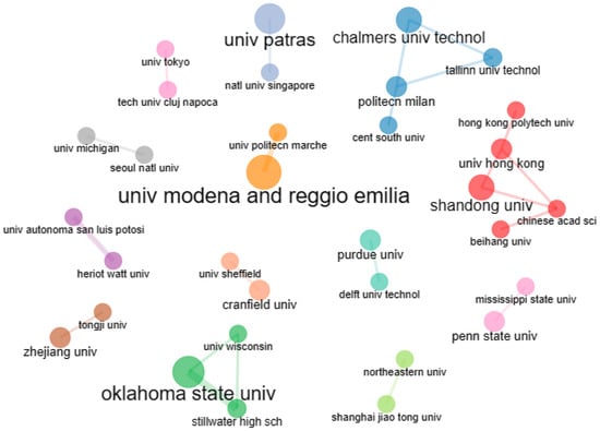 Finally, the fourth research objective (RO4) addressed the social structure of the published documents on VRSIM in manufacturing in i4.0. The results of co-author analysis, institutions, and countries’ collaboration indicate an emerging and developing collaboration network, which points to an evolving research field that can benefit from more network formation among authors, institutions, and countries. Increased partnerships can help explore further research areas on VRSIM in manufacturing towards accomplishing the automation and intelligence manufacturing goals in the 4IR. Further, the results (e.g., Figure 9) indicate that the network relationship among institutions within countries is stronger than collaborations between countries. Future work can form stronger research partnerships among authors, not only within but also across countries.