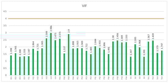 To assess the framework model and quantify the concurrent influences among its factors, the gathered data were subjected to analysis using the Structural Equation Modeling (SEM) technique, performed with SmartPLS 4 software []. Regression analysis was employed to examine the association between the independent and dependent variables. The incorporation of Partial Least Squares (PLS) algorithms facilitated the evaluation of the structural relationships among the model’s elements and the verification of the research hypotheses.