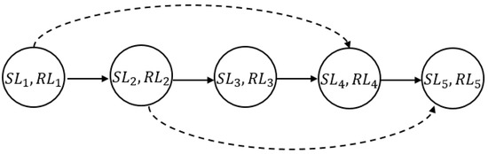 The DP model is used to describe request assignment and sequencing decisions and to depict the dynamic change in the location state. According to the total number of requests n, the DP model is divided into n stages. In stage b, the DP model needs to arrange b + 1 requests, so that there are permutations. In each permutation, an MIP model is established to select the storage and retrieval locations under the current state of rack locations, and then to calculate the processing time and tardiness of the request. When the request is scheduled, the model should update the rack location state, and the updated rack location state is used as the input state for the next stage.