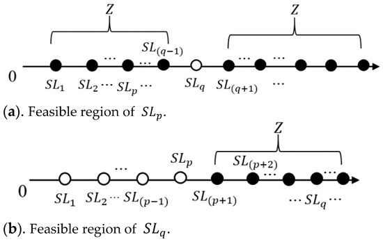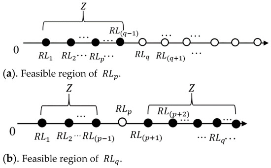 Let be the set of storage requests and be the set of retrieval requests. The number of retrieval requests is equal to the number of storage requests (Hachemi, Sari, and Ghouali 2012) [19], and each retrieval request has a due date . Let be the index of retrieval requests in set . Let be the set of cranes; it can also be said that there are aisles in total. We assume that the crane executes the task in DC mode, so the DC time refers to the travel time of executing the dual command cycle of storage and retrieval requests (Nia, Haleh, and Saghaei 2017) [8]. The PCS problem can be stated as follows: Schedule a set of n requests on a set of cranes, and select the storage and retrieval locations for these requests. Therefore, a solution for this problem consists of three parts: First, denotes the optimal solution of retrieval requests’ sequence on each machine. Second, denotes the optimal solution of corresponding selected storage locations. Third, denotes the optimal solution of corresponding selected retrieval locations, so the complete solution of the problem is . Thus, the tardiness of the retrieval request can be calculated by max, where denotes the completion time of retrieval request . Finally, the objective is to minimize the total tardiness of the requests: . The following assumptions are used throughout this paper: