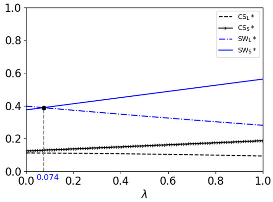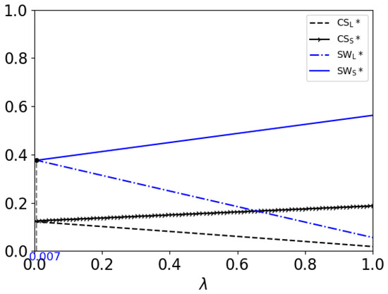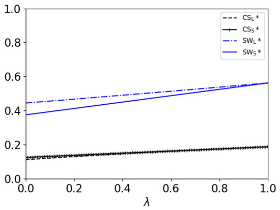 Figure 2 shows that the consumer surplus and the social welfare both increase with the discount factor in the LR model. This result indicates that consumers and publisher both benefit from a stronger discount factor. Figure 2 also shows that the consumer surplus in the SR model is higher than that in the LR model; the social welfare in the SR model is higher if ; the social welfare in the LR model is higher if . From Theorem 3, it can be seen that the price of the e-book in the SR model is lower than that in the first stage of the LR model. The price of the e-book in the second stage of the LR model falls to less than the price of the e-book in the SR model. As in the previous analysis, the publisher can obtain more consumer surplus by adopting skimming pricing for the e-book under the LR model. Thus, the consumer cannot obtain more surplus in the LR model. This result indicates that most consumers prefer the SR model. However, as mentioned above, the publisher prefers to release the audiobook after the e-book if the consumers are patient enough. In this case, the publisher can obtain more profit, which results in a higher social welfare.