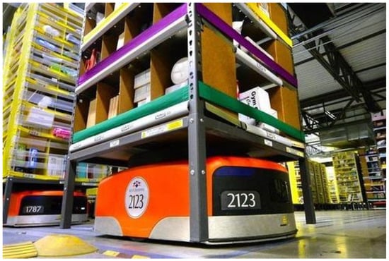 - Zhang, Z.; Chen, J.; Guo, Q. Application of Automated Guided Vehicles in Smart Automated Warehouse Systems: A Survey. CMES Comput. Model. Eng. Sci. 2023, 134, 1529–1563. [Google Scholar] [CrossRef]