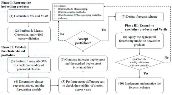 An empirical study applying the framework to real-world IC tray sales data demonstrated its practical effectiveness. Unlike earlier theoretical models, such as those by Bunn and Vassilopoulos (1999) [38], empirical testing has validated our framework. This real-world validation not only strengthens the robustness of our findings but also underscores the practicality of integrating K-means clustering with the BCG Matrix for sales forecasting, instilling confidence in its application.