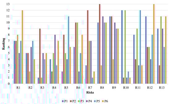 Figure 2 depicts the ranking results of potential risks in six processes. The ranking of potential risks in each process is as follows: