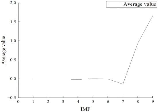 This research conducts a comprehensive evaluation via four primary metrics: the mean cycle length of the IMFs, their correlation with the original series, the variance percentage of the original series explained by the IMFs, and the share of total modal decomposition variance attributed to the IMFs (refer to Table 1). Owing to the dynamic characteristics of the IMFs’ amplitude and frequency, their cycle lengths vary. Therefore, the average cycle length is determined by dividing the number of peak points in each IMF. The correlation coefficient assesses the linkages between the IMFs and the original data. Each IMF, acting as a distinct component, contributes differently to the overall variability of the original series, quantified by the variance percentage that each IMF accounts for. Furthermore, to gauge their respective impacts on the modal decomposition, we calculate the variance proportion of each IMF within the aggregate of all IMFs.