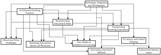 | 10 | Technology Adaptation and Development | TC-AD, AI-AD, AI-LI | Reflects the process and challenges of educators and learners adapting to AI technology |