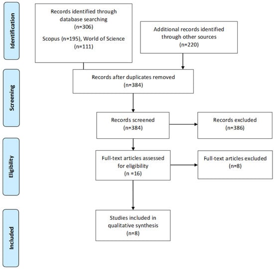 - Arksey, H.; O’Malley, L. Scoping studies: Towards a methodological framework. Int. J. Soc. Res. Methodol. 2005, 8, 19–32. [Google Scholar] [CrossRef]
