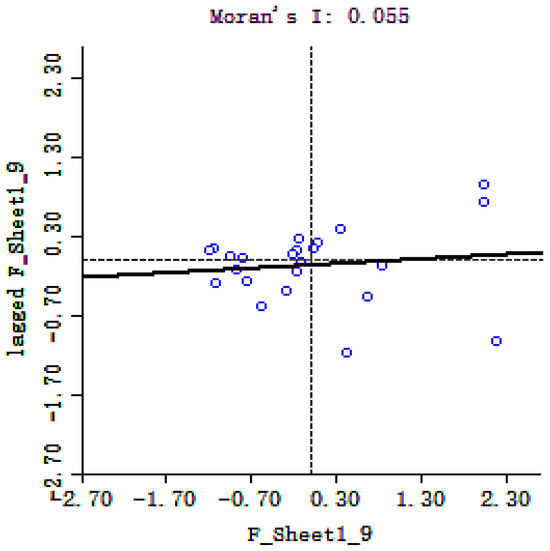 Scatter plot of Moran’s I index for regional area and resident population over 65 years of age.