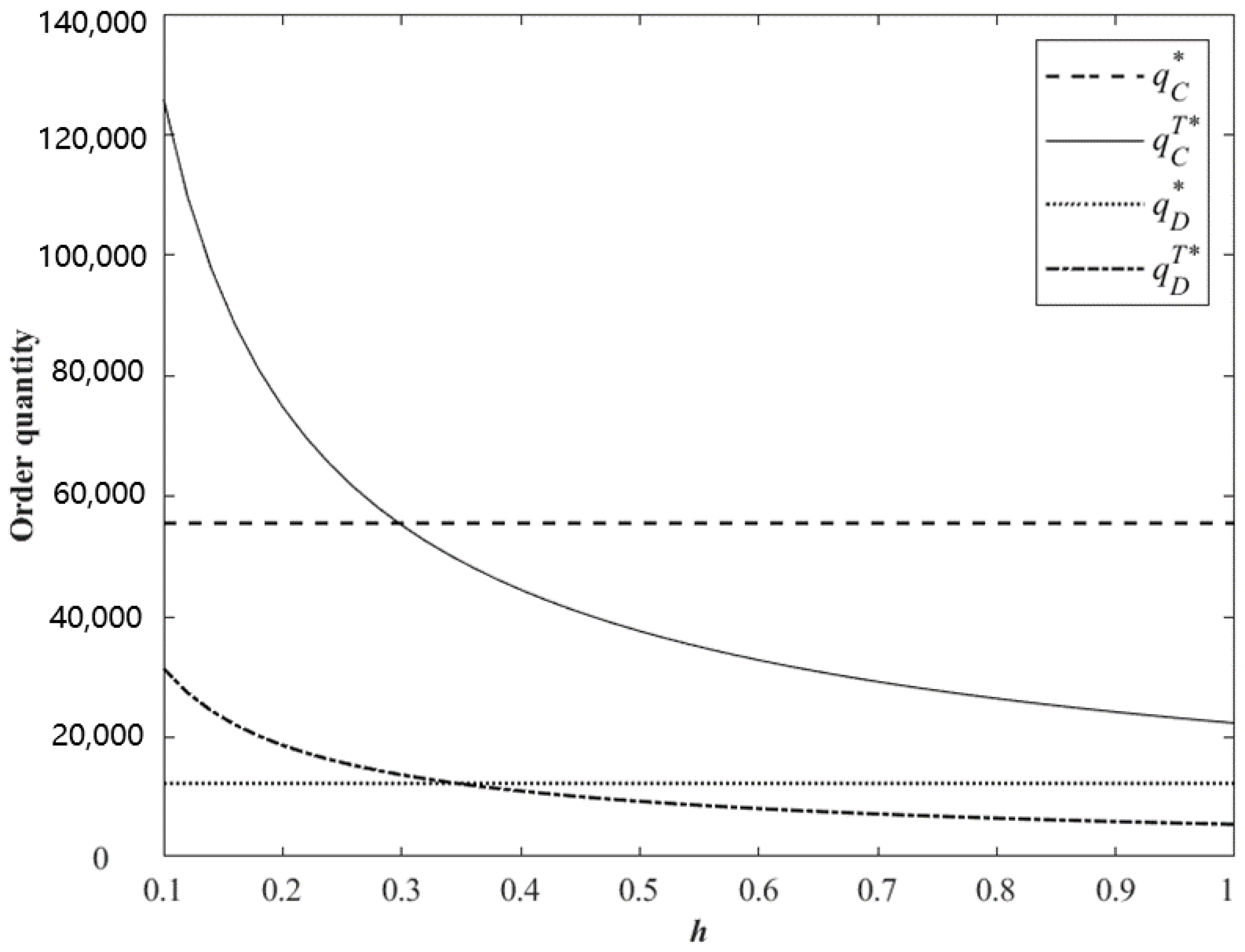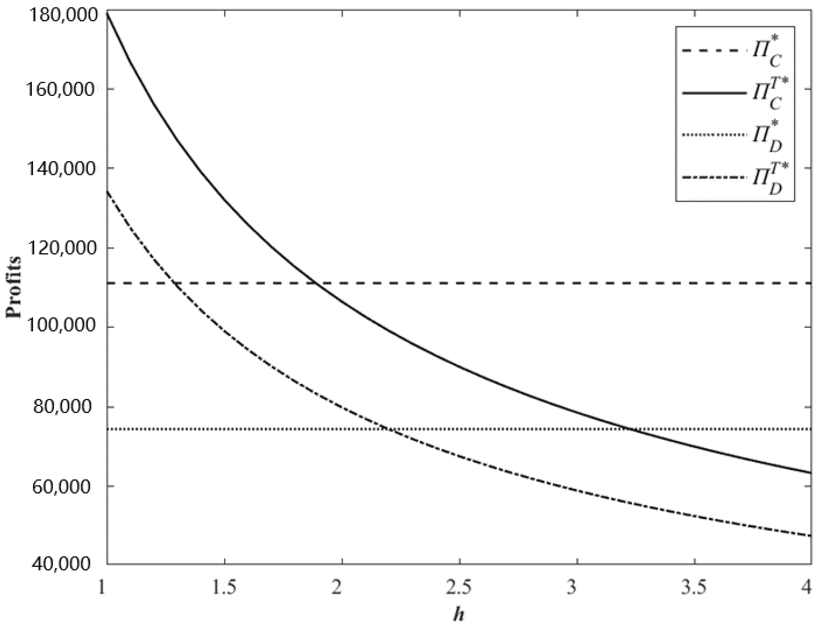 h is higher than a certain level, investing in blockchain technology will reduce the supply chain income. This also means that there is a threshold point for the unit investment cost of blockchain technology. Within the threshold range, supply chain investment in blockchain technology can generate more revenue.