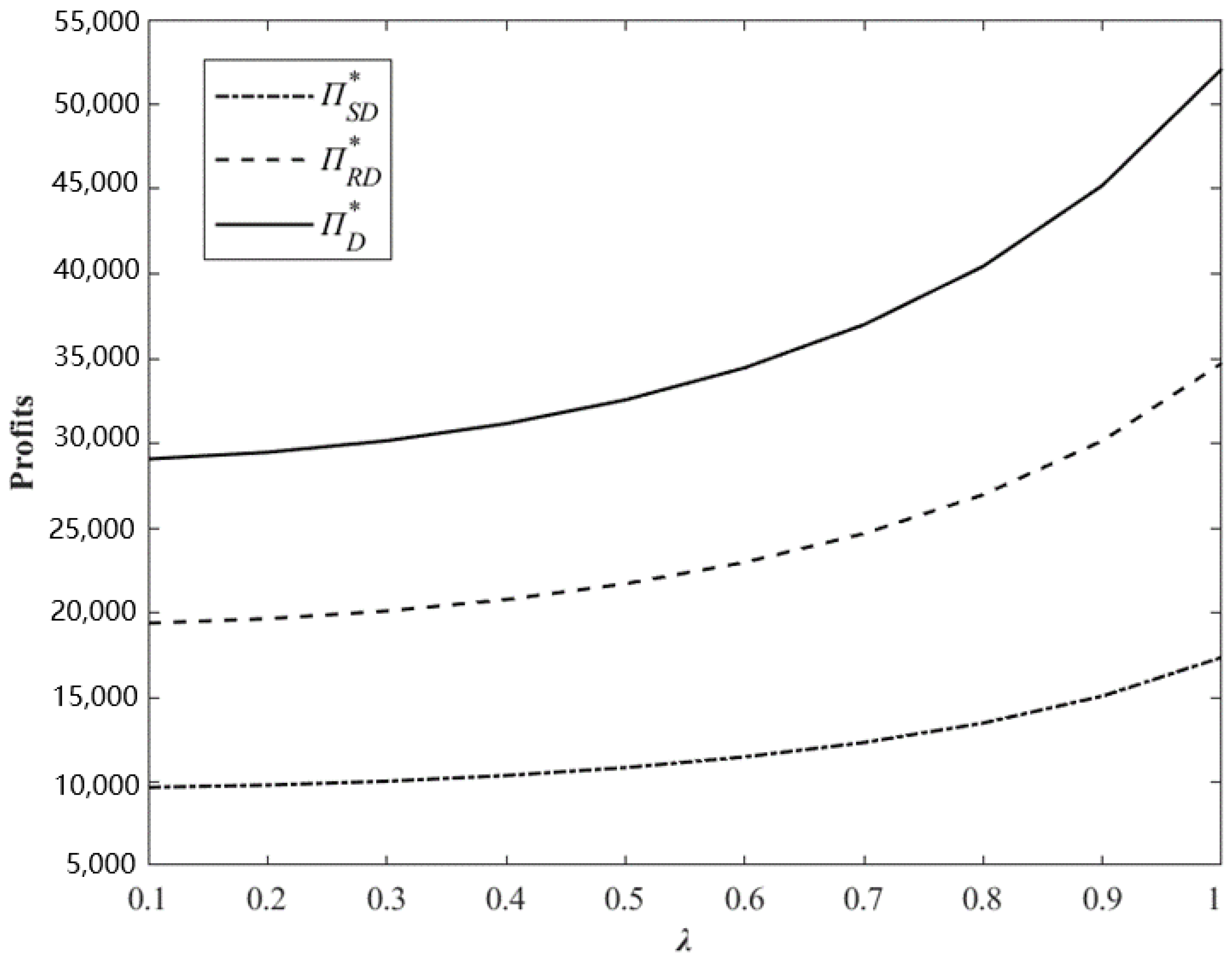 λ, the higher the degree of misrepresentation), the profits of all members in the fresh food supply chain will decline, because the misrepresentation cannot increase the actual market demand, but will lead retailers to increase sales prices to make up for profits, further reduce market demand, and the order quantity will eventually decline.