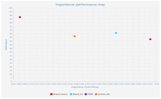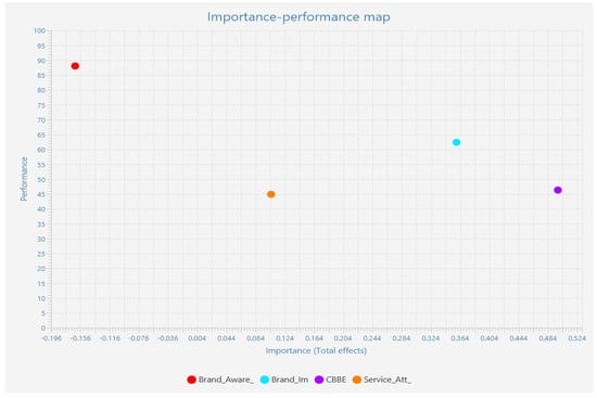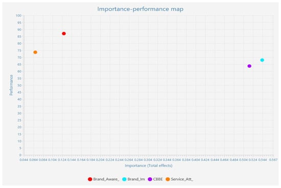 To test the hypothesis, we need to look at both the structural model assessment (Table 3) and the bootstrap results for indirect effects (Table 4). Through the data in these two tables, we will later use p values to understand if the model hypothesis can be proven to have significant impact according to this study. Furthermore, an importance–performance map analysis (Figure 2) will also be performed with the goal of gaining more insights into the model’s behavior and its managerial implications. This analysis enables us to understand which variables perform better in the model, and which are of highest importance when it comes to impacting WPP.