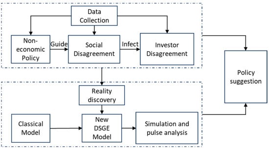 Secondly, leveraging the empirical findings, we adapted the traditional Dynamic Stochastic General Equilibrium (DSGE) model to integrate non-economic policies and social disagreement as critical non-economic factors. Through simulation and modeling, we assess the potential regulatory effects of non-economic policies on economic dynamics, thereby providing theoretical validation for the construction of our research framework.