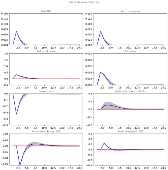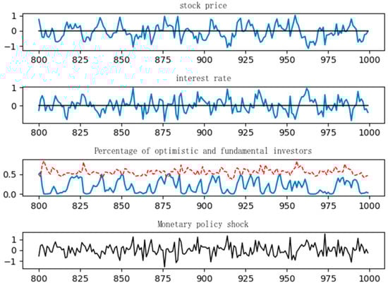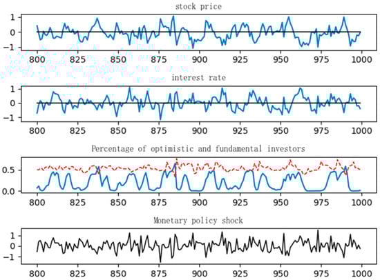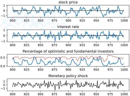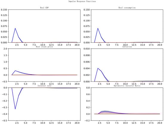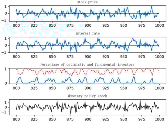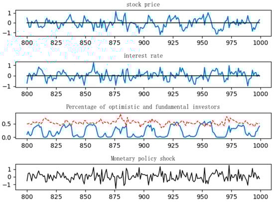 Keynesian “animal spirits” provide a framework for understanding the influence of non-rational factors on market decision-making. Azariadis (1981) [] was among the first to incorporate “animal spirits” into the Dynamic Stochastic General Equilibrium (DSGE) model, with subsequent enhancements by Farmer & Guo (1994) [] and Benhabib & Farmer (1994) []. Nevertheless, these studies continued to operate within the confines of rational expectations. Sargent (1993) [] was the first to introduce bounded rationality into macroeconomic models. De Grauwe (2011) [] proposed that economic agents alternate between optimistic and pessimistic forecasting rules and adjust these based on actual outcomes, thereby providing a mechanism to capture “animal spirits”. Wen (2017) [] integrated these characteristics into the DSGE model, enabling the endogenous modeling of boom-and-bust cycles in stock markets, wherein changes in economic policy significantly influence investor sentiment, ultimately affecting stock prices and the broader economy. Liu et al. (2023) [] incorporated investor and entrepreneur confidence into the DSGE framework, demonstrating that government economic policies must consider confidence factors to enhance their efficacy.