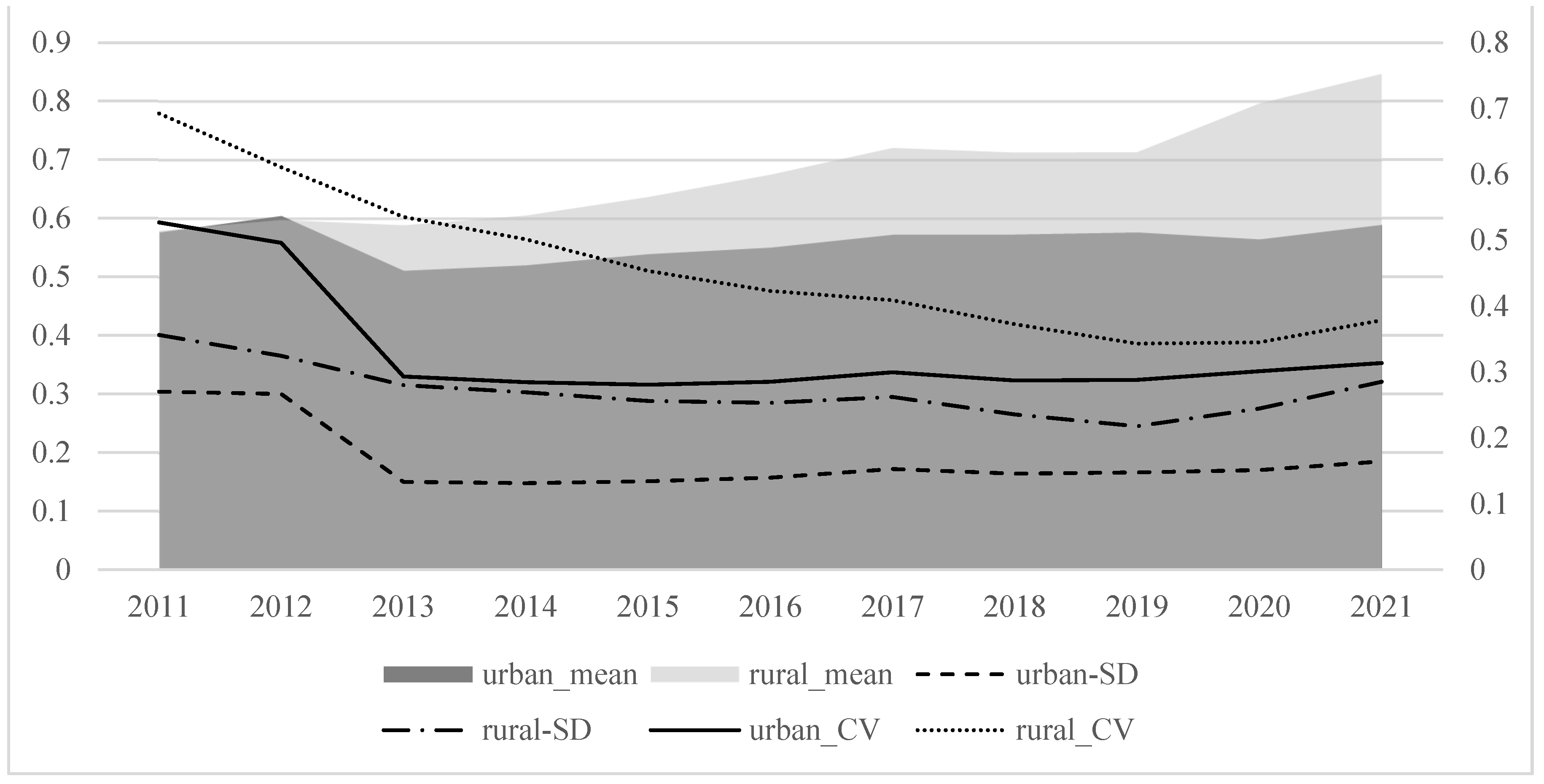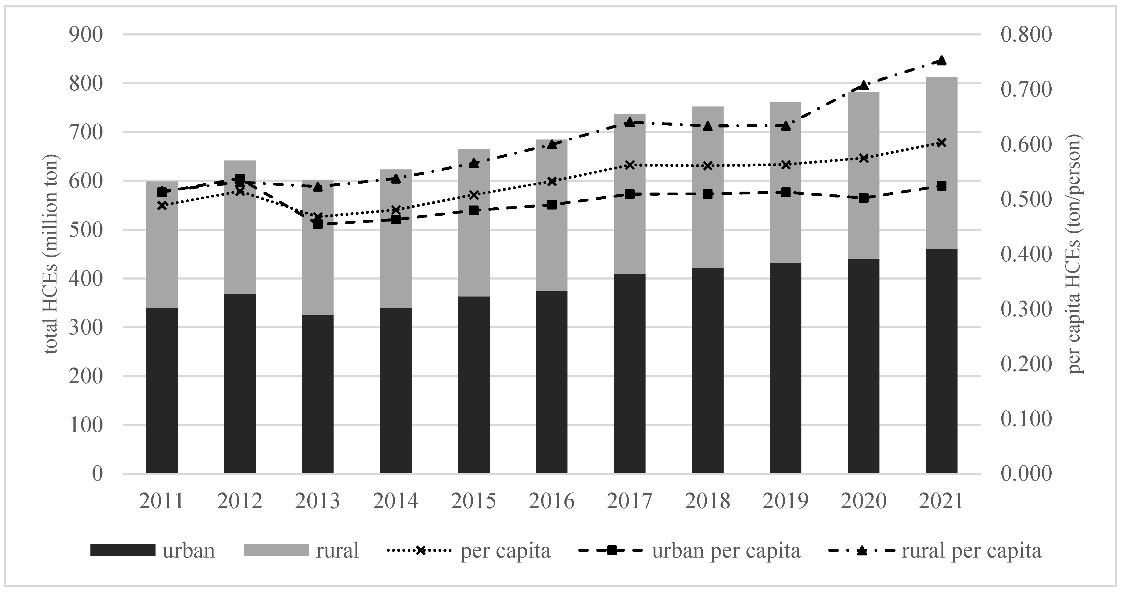 2.4. Overview of Urban and Rural HCEs and the Development of DF in China
