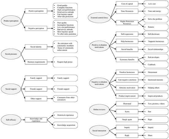 Generally, consumers promote the formation of satisfaction evaluation behavior in order to achieve a certain goal, so CSEB is a motivated behavior. What is more, it also accompanies the generation of online review information. Therefore, CSEB is a typical “black box” problem, which is regarded as a complex cognitive system and is difficult to accurately measure [6]. However, in the existing research on CSEB, the data source is often a questionnaire or online comments [5,7]. There is a lack of original data from in-depth interviews to analyze the influence mechanism of consumer product evaluation from the perspective of social e-commerce. As a result, the extracted factors affecting the evaluation behavior of consumer satisfaction are not comprehensive, and the influence mechanism is still unclear. In addition, few studies focus on the role of social factors or reveal the internal influence mechanism of CSEB.