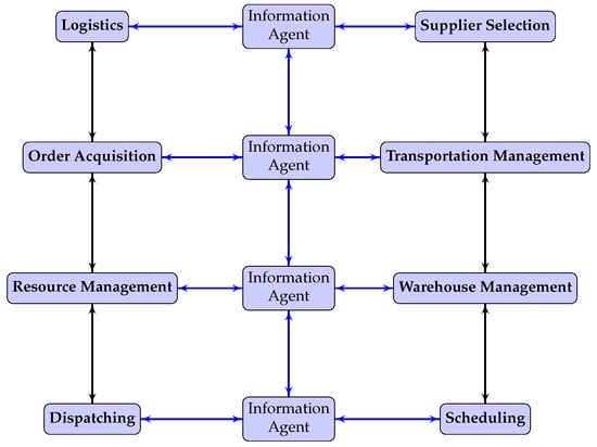A supply chain management system consists of many interconnected and interdependent interacting agents. For example, the functional agents include order acquisition agents, logistic agents, transportation agents, and scheduling agents. Furthermore, the interconnectedness and interdependencies are clearly evident in Figure 3.