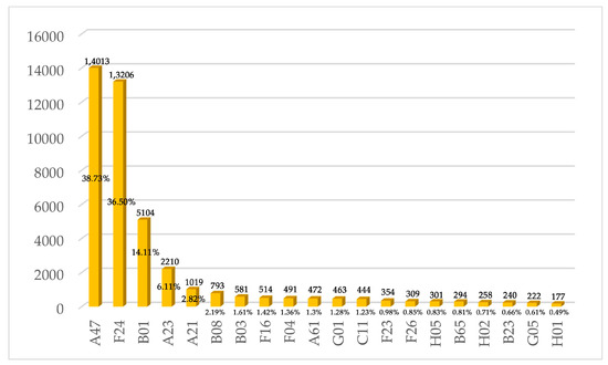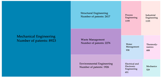 Prioritizing technologies and knowledge in mature domains can shorten the design cycle and improve the reliability of conceptual solutions [49]. Thus, after determining the optimal target domain, all patents included in the domain can be categorized according to technical topics. Each technical topic is ranked according to the number of patents with priority given to technical topics with a large number of patents at a mature stage.