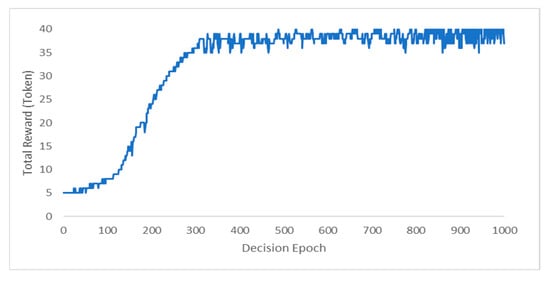 Figure 6 shows the performance of the proposed Predictor, where the total reward is noticed to be low at the beginning of learning then becomes higher as the number of decision epochs increases. We can notice that after around 400 decision epochs, it becomes stable. This fluctuation is a result of the changes in the environment, which is the state space, affecting the obtained reward in different decision epochs.