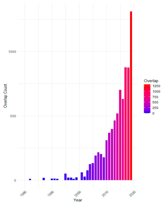 Dynamic topic modeling was utilized to systematically investigate themes and concepts present in the corpus of research manuscripts [40]. This method allowed us to deduce and induce the underlying topics and themes within and across the documents. By analyzing word patterns and relationships, dynamic topic modeling revealed both predefined and emergent topics from the dataset.