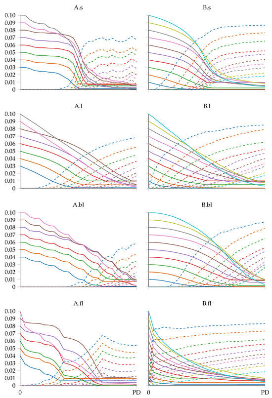 respectively. The CLT holds only if the random variables are iid (i.e., independent and identically distributed). In the simulation model, the random variables correspond to the tasks’ cost deviation PDFs and are iid only in the A configurations. However, if the only difference between Scenarios A and B is in the randomization of and the simulation model verifies the CLT in the A scenarios, then the B configurations should also be verified.