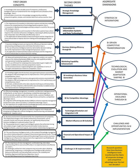 - Operational Efficiency and Decision-Making: The second-order themes and aggregate dimensions from the Gioia analysis highlight how BI tools have enhanced decision-making efficiency and operational excellence. By providing comprehensive data analysis and real-time insights, BI has enabled companies to make more informed, data-driven decisions, optimizing various aspects of their operations, from resource allocation to customer engagement. However, the effective utilization of data is essential to survive in today’s competitive business environment [71]. Olszak and Ziemba [72] present Business Intelligence Systems as some holistic infrastructure of decision making. Organizations that are interested in improving the quality of decision making, image, or quality of partner service should incline towards the development of information technology infrastructure that will represent a holistic approach to business operations, customers, suppliers, etc. [73];